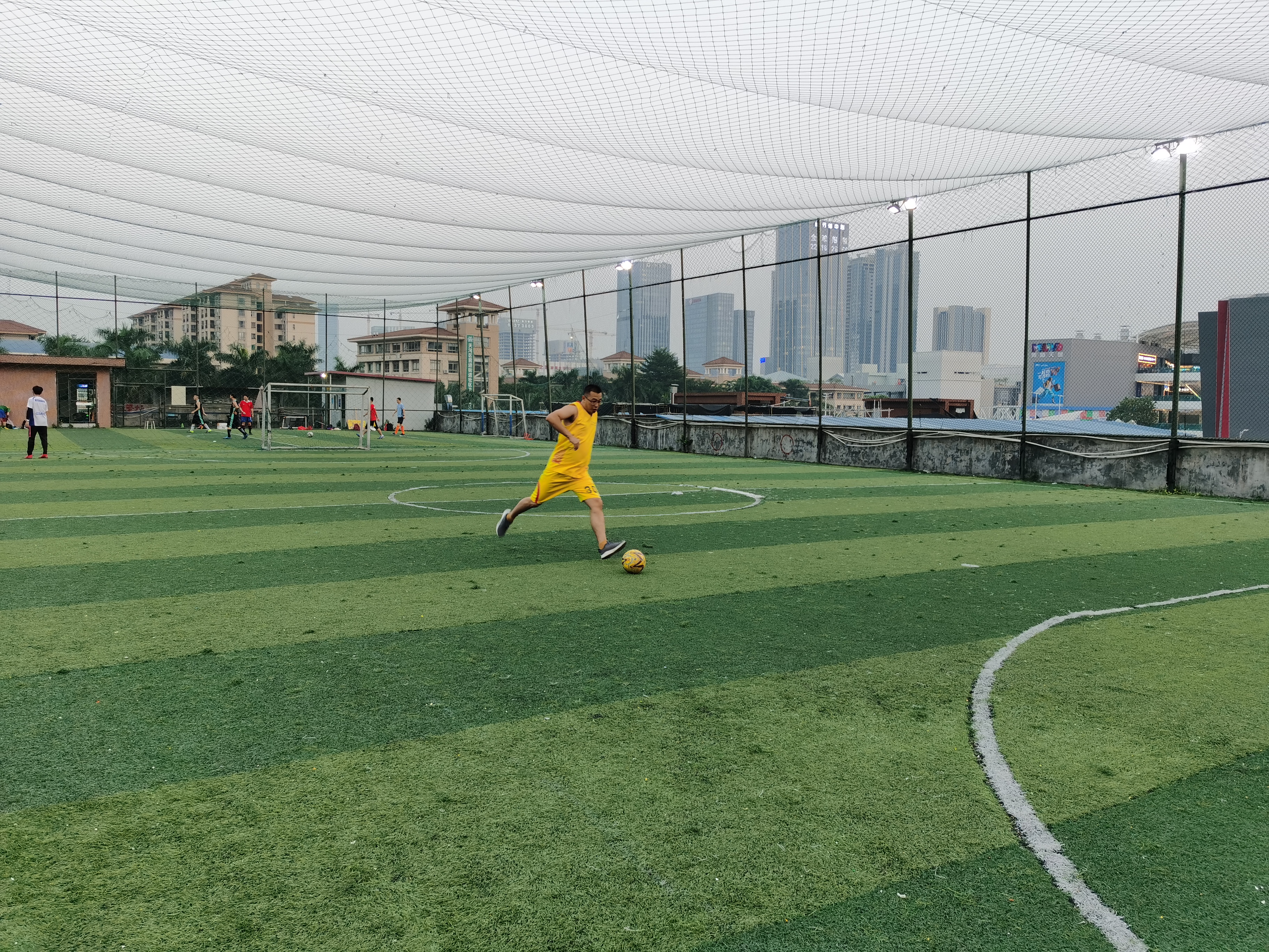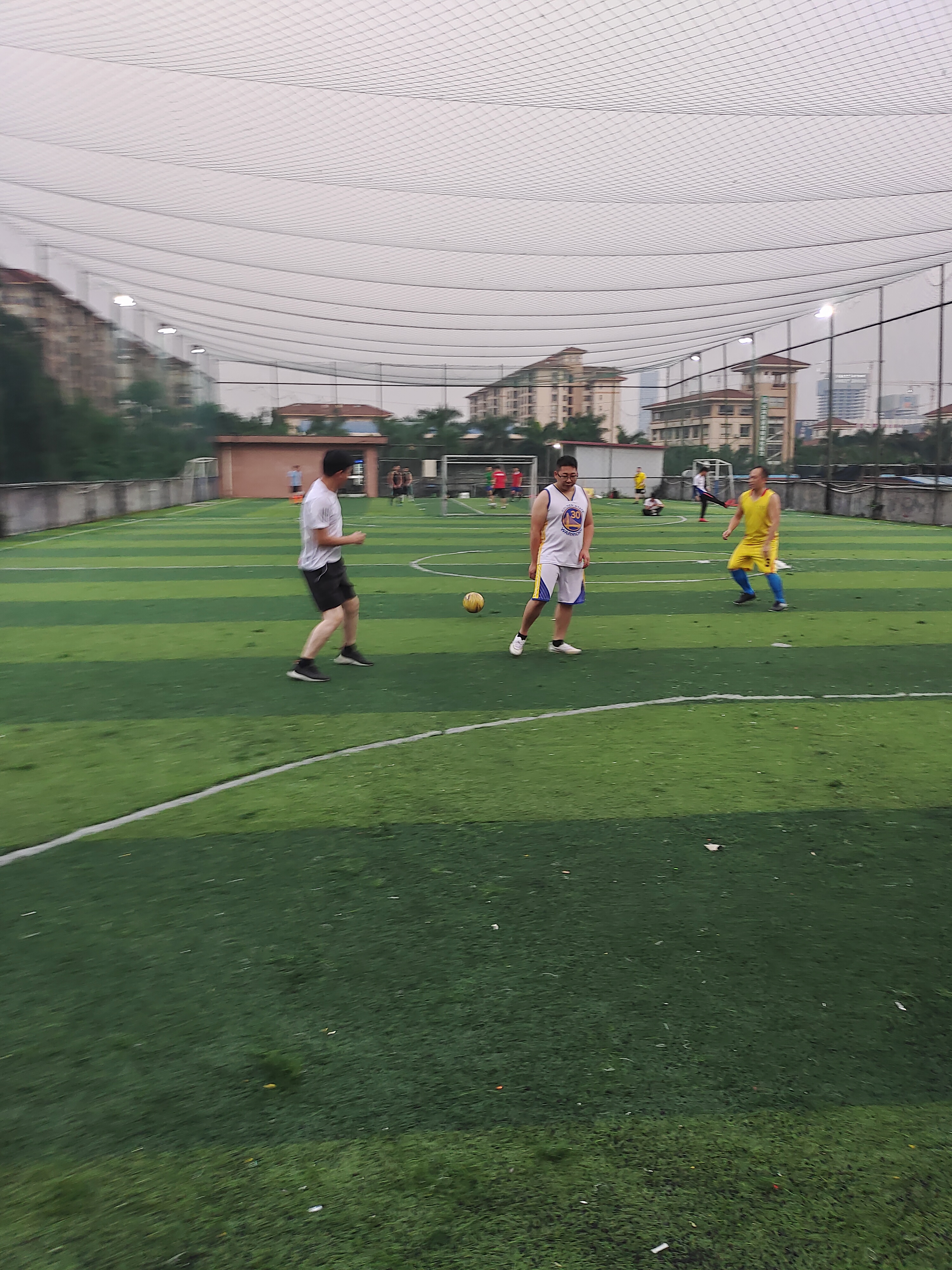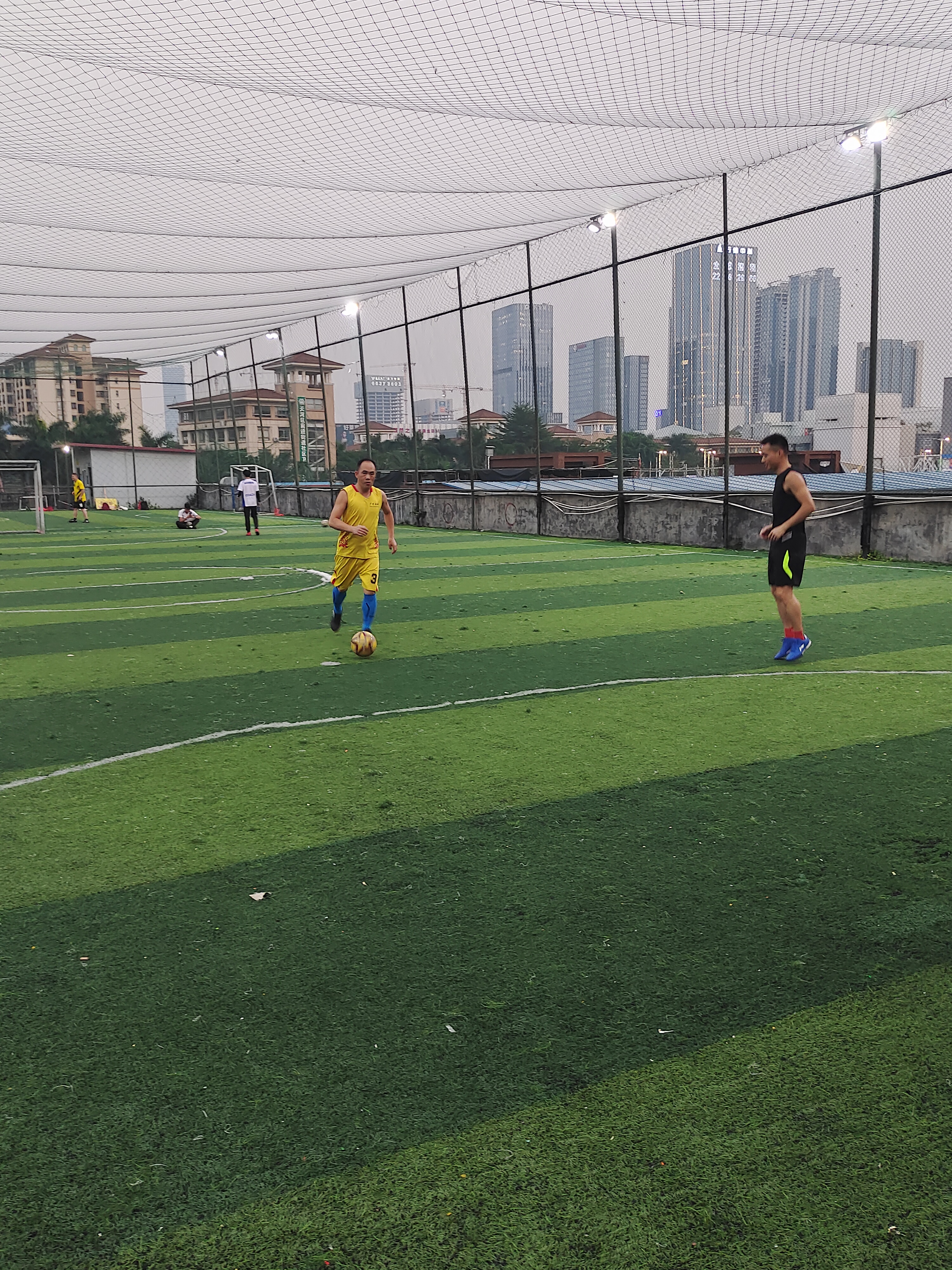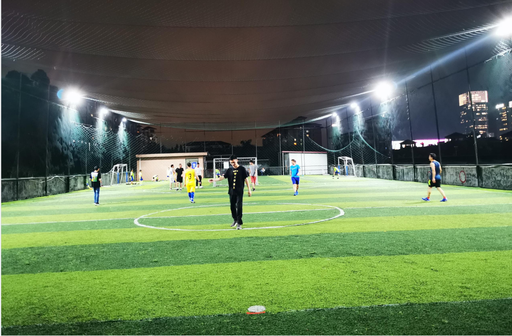 比賽開始,全體球員分為兩支球隊。比賽中,雙方你來我往,互有攻防,隊員分工明確、配合默契,在球場上不斷跑動、進攻、帶球過人,拼搶激烈而友好。雖然僅僅是一場公司內部交流比賽,但是隊員們在場上所體現出來的拼搏精神和對比賽的認真態度并不亞于專業球員。夜色漸漸變濃,比賽宣告結束,最終雙方比分不相上下,握手言和。