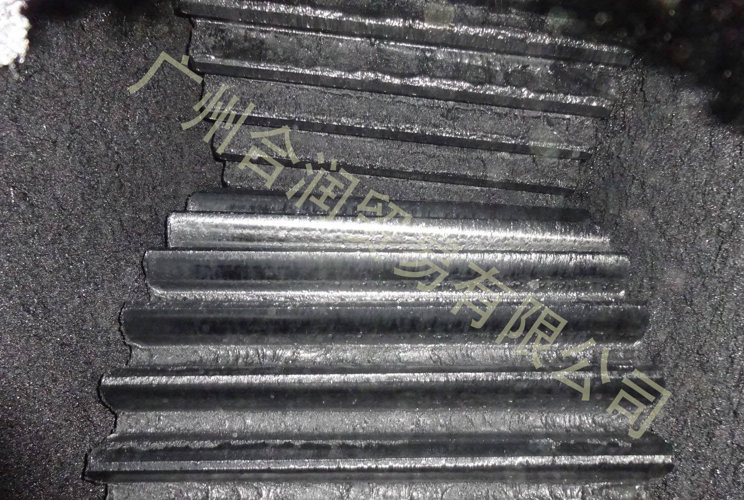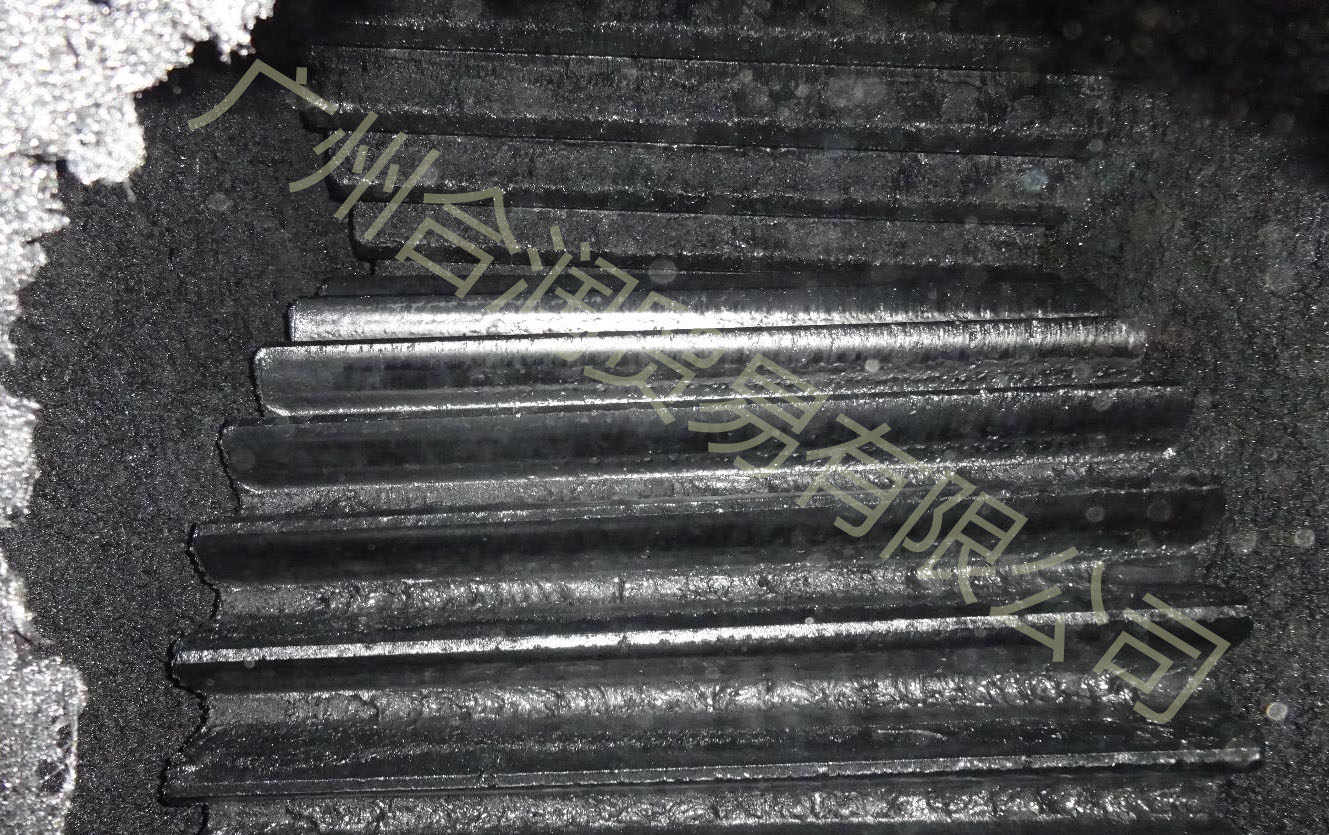 打開磨機的觀察口在頻閃儀下觀察大小齒輪工作齒面情況,大小齒輪工作面已被油膜覆蓋,大小齒輪的工作齒面沒發現有磨損現象和磨損痕跡,油位有些偏低,需要添加些潤滑油使油面沒過小齒輪的四個齒為益,這樣能讓油膜形成得更厚粘附性更好會使潤滑油發揮到最佳潤滑效果,對大小齒輪起到更好的保護。