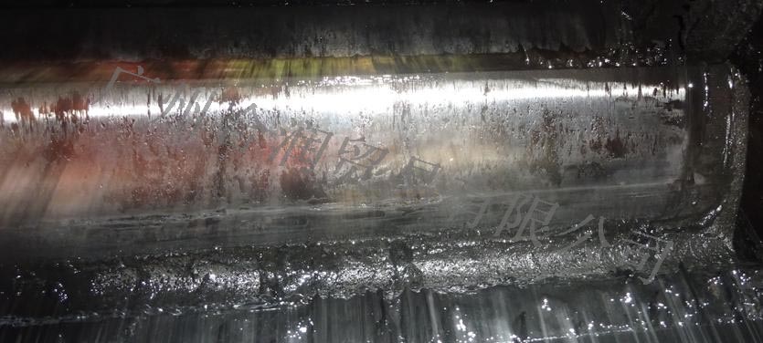 2、開式齒輪潤滑狀況:小齒齒面的潤滑劑粘附量較少,處于欠潤滑狀態。現場觀察潤滑劑發現粘度較低,粘附性較差,如長期使用會導致磨損加重,有齒面剝落甚至斷齒的風險。