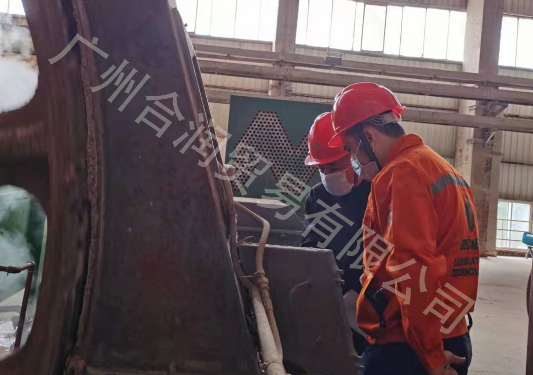 在貴公司設(shè)備部工程師的陪同下,對(duì)貴廠磨機(jī)的潤(rùn)滑狀況做了檢測(cè)。 打開磨機(jī)的觀察口在頻閃儀下觀察大小齒輪工作齒面情況,大小齒輪工作面已被油膜覆蓋,大小齒輪的工作齒面沒發(fā)現(xiàn)有磨損現(xiàn)象和磨損痕跡,油位有些偏低,需要添加些潤(rùn)滑油使油面沒過小齒輪的四個(gè)齒為益,這樣能讓油膜形成得更厚粘附性更好會(huì)使?jié)櫥桶l(fā)揮到最佳潤(rùn)滑效果,對(duì)大小齒輪起到更好的保護(hù)。 齒面溫度比較正常,大小齒輪溫差在合理范圍,大小齒輪的載荷面積正常,密封做...